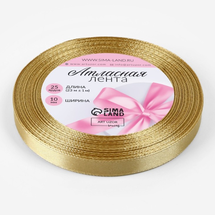 Лента атласная, 10мм, 23м, цвет золото купить в Екатеринбурге | Кондитер Мания