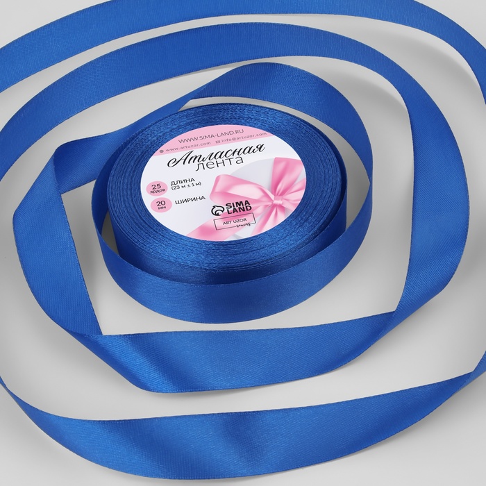 Лента атласная, 20мм, 23м, цвет синий купить в Екатеринбурге | Кондитер Мания