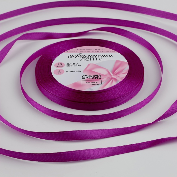 Лента атласная, 6мм, 23м, цвет пурпурный купить в Екатеринбурге | Кондитер Мания
