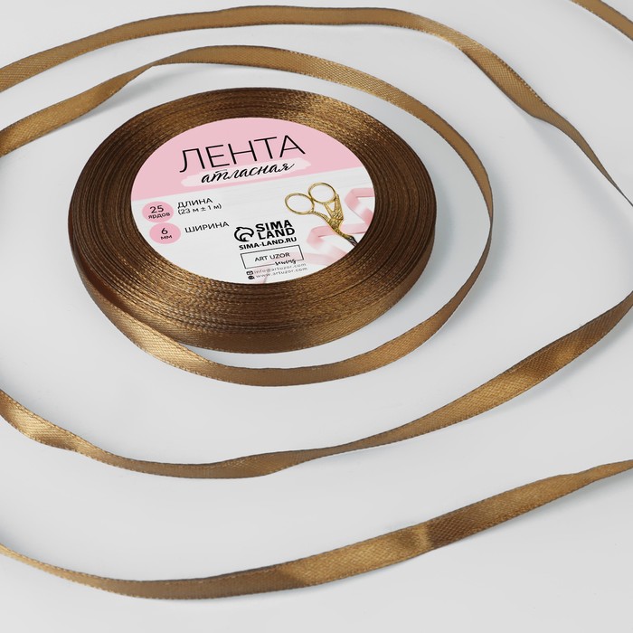 Лента атласная, 6мм, 23м, цвет сепия купить в Екатеринбурге | Кондитер Мания