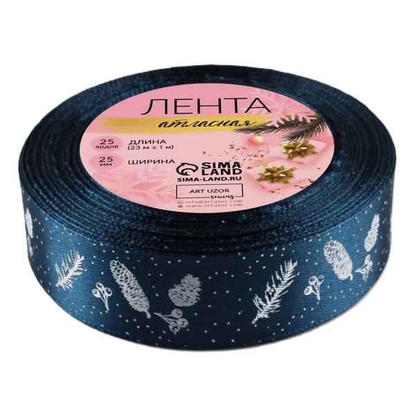 Лента атласная "Шишки и веточки", 25мм, 23м (Темно-Синий) купить в Екатеринбурге | Кондитер Мания