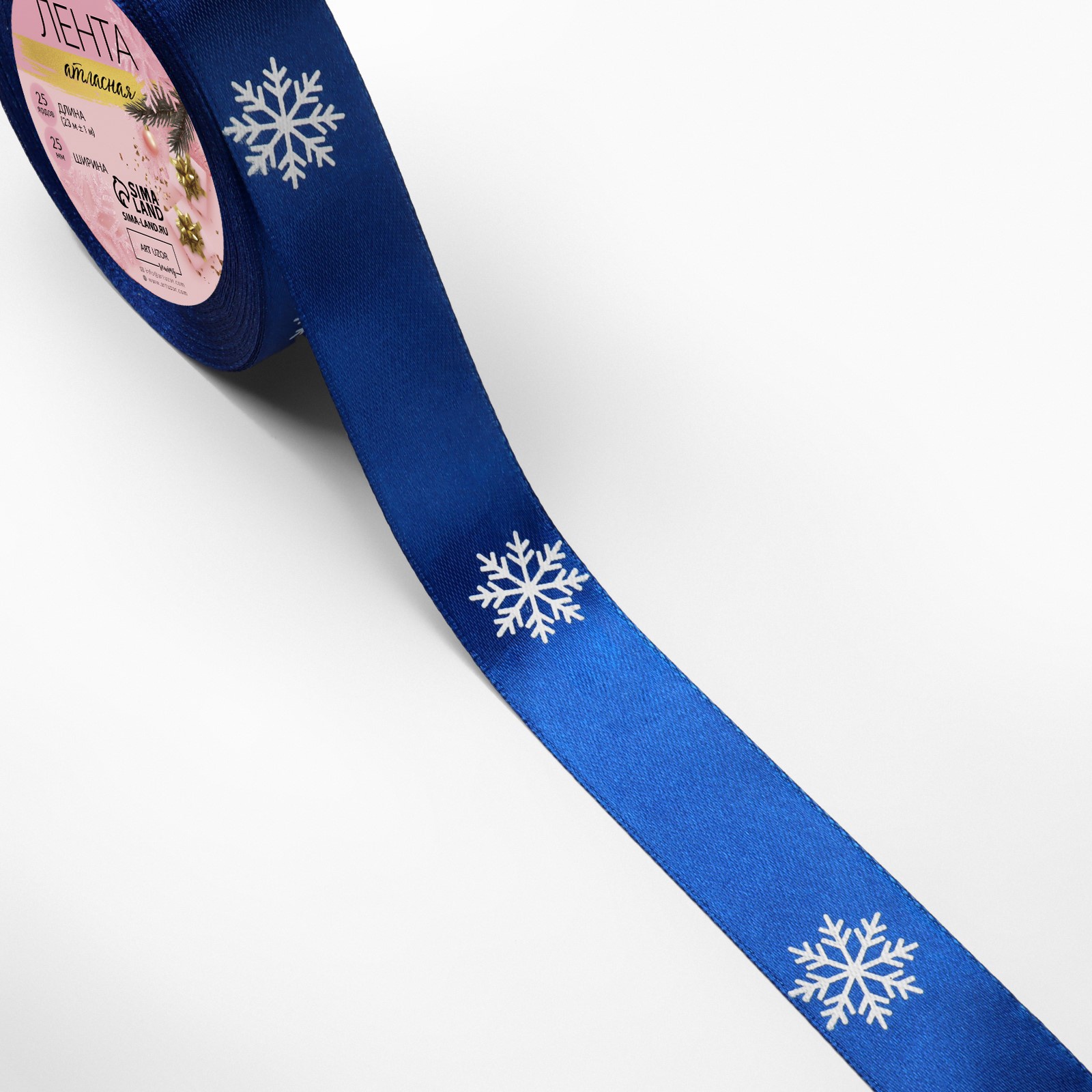 Лента атласная "Снежинки", 25мм, 23м (Синий/Белый) купить в Екатеринбурге | Кондитер Мания