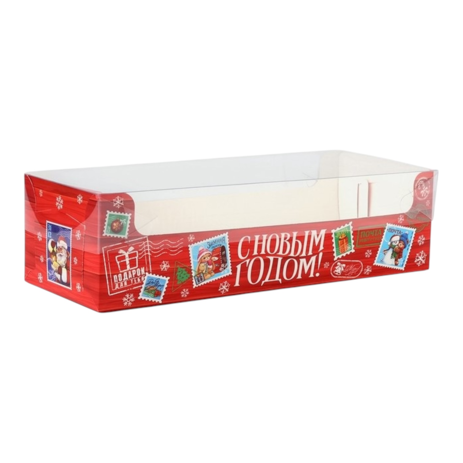 Коробка для рулета с Пластиковой крышкой "Почта НГ" 300*110*80 купить в Екатеринбурге | Кондитер Мания
