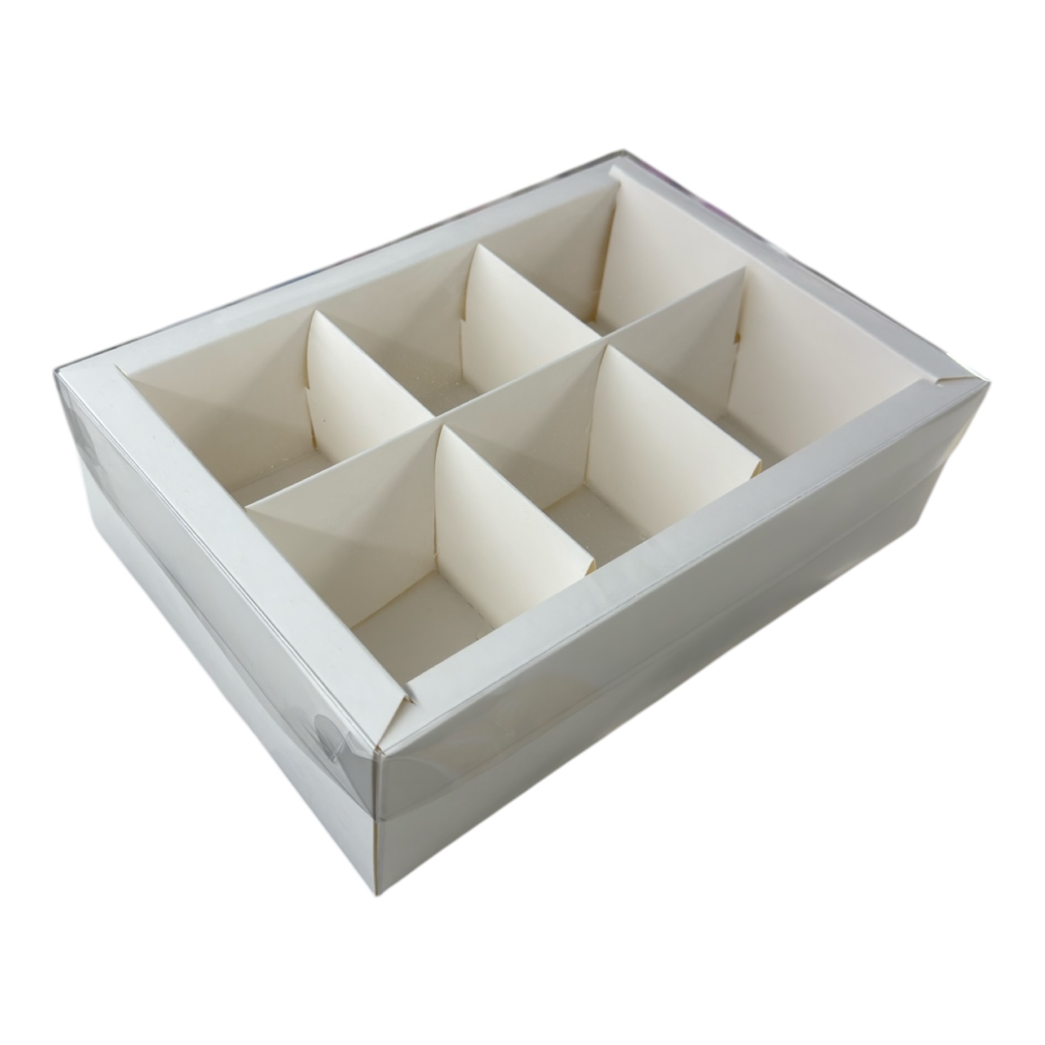 Коробка для ассорти десертов с ПЛАСТИКОВОЙ КРЫШКОЙ 24*17*7 (6 ячеек) купить в Екатеринбурге | Кондитер Мания