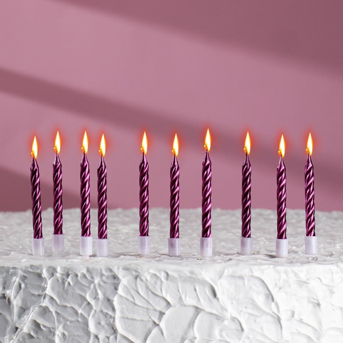Набор свечей для торта «Спираль», фиолетовый металлик 5см, 10шт