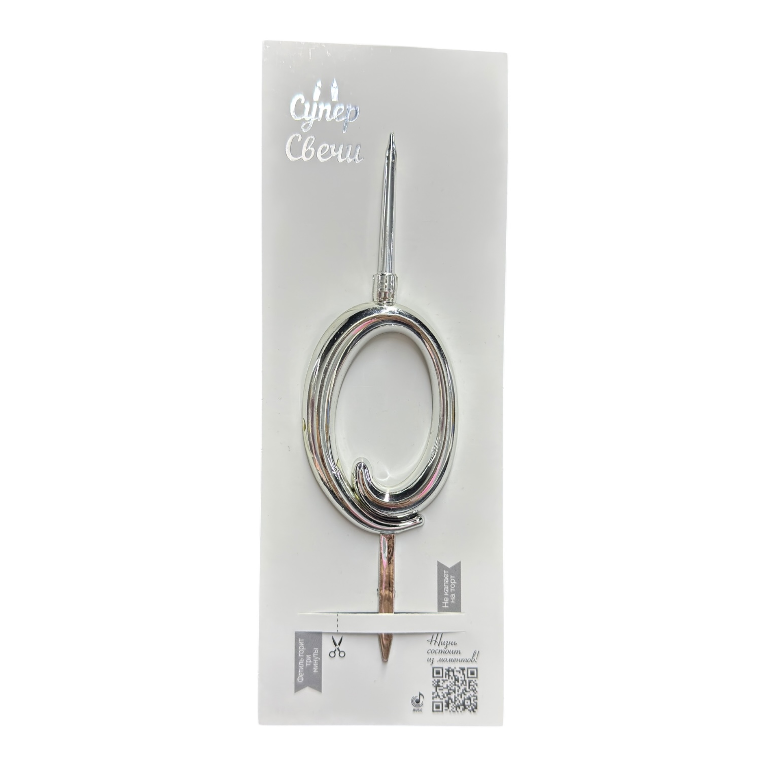 СУПЕР свеча цифра «0» серебро