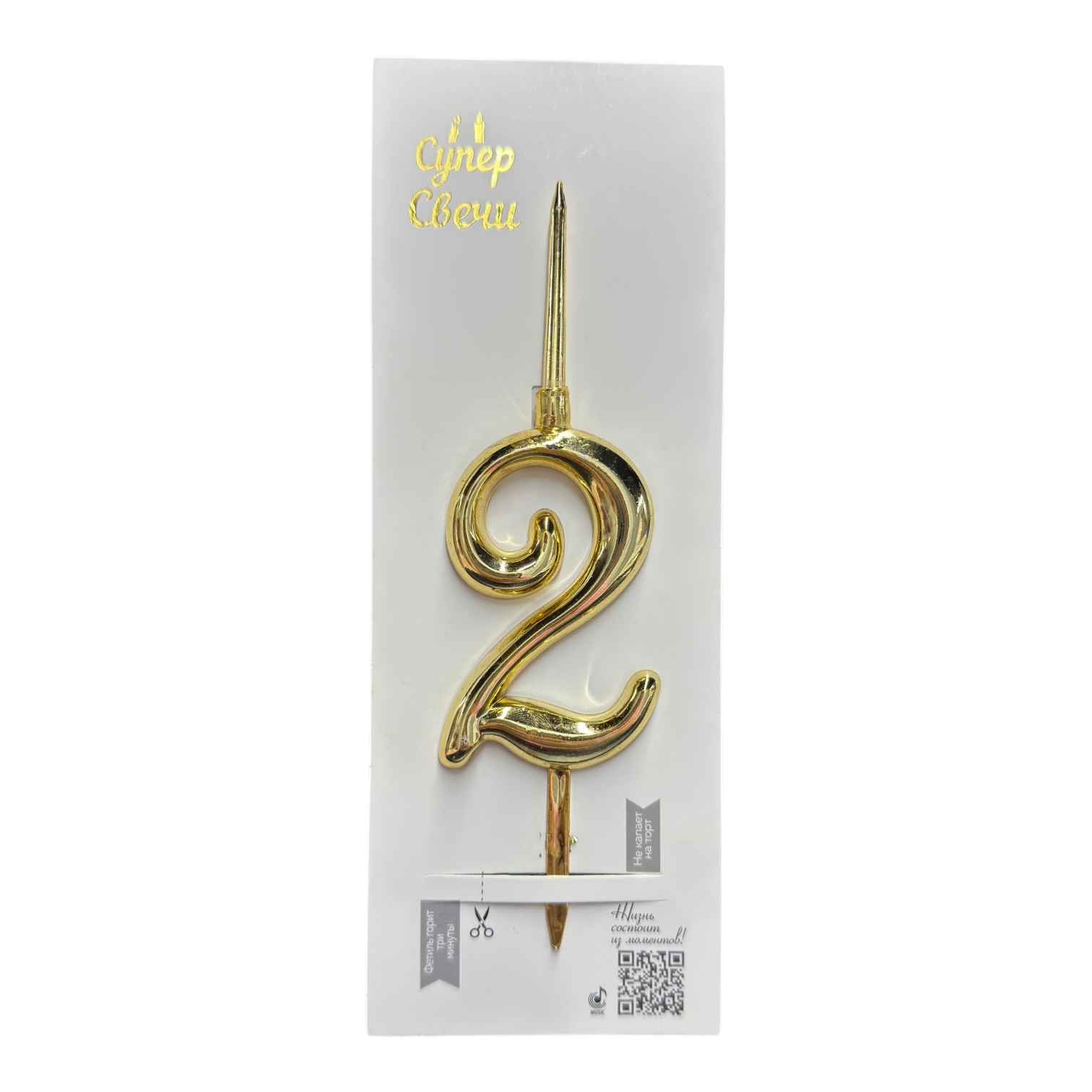 СУПЕР свеча цифра «2» золото