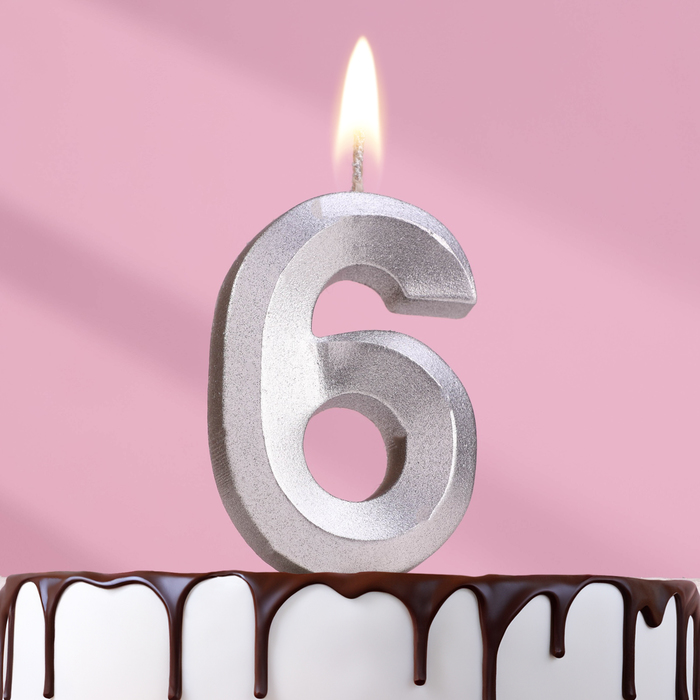Свеча цифра "6" грань СЕРЕБРО, 7.5см купить в Екатеринбурге | Кондитер Мания