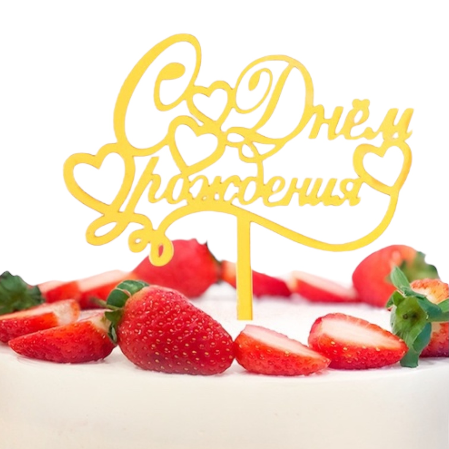 Топпер "С Днем Рождения" с сердцем, золото купить в Екатеринбурге | Кондитер Мания