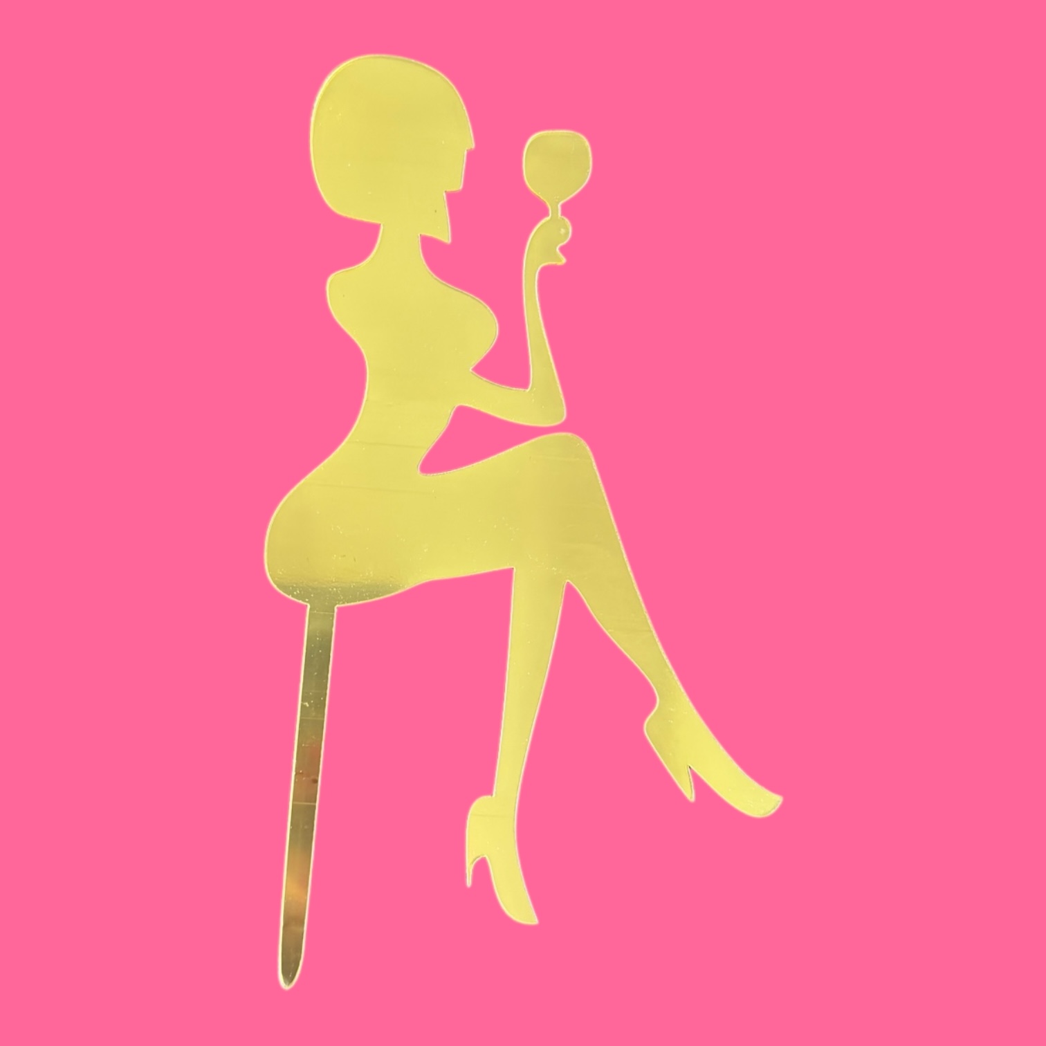 Топпер силуэт "Сидящая девушка с бокалом" золотой купить в Екатеринбурге | Кондитер Мания